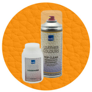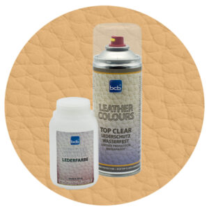 1. Lieferumfang: 250 ml BCB Lederfarbe (RAL) + 400 ml BCB Top Clear Versiegelung.