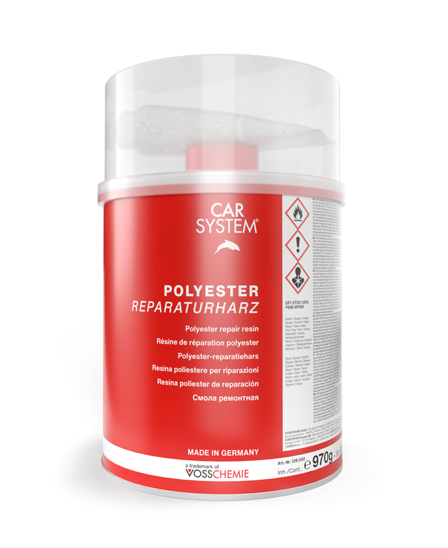 Polyester Reparaturharz ist ein hochreaktives Polyesterharz – Geeignet als Glasfaserlaminat für Reparaturzwecke – Haftung auf anderen Polyesterharzen– Haftung auf fast allen Metalluntergründen – Zur Haftverbesserung bei Metalluntergründen sollte Carsystem Fill eingesetztwerden