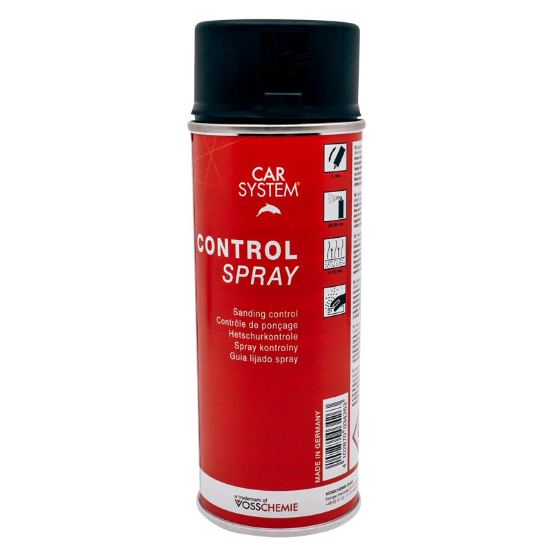 Das Carsystem Control-Spray ist ein schwarzes Kontrollspray, welches sich auf die Oberfläche legt, um Schleifriefen und Strukturen sichtbar zu machen.