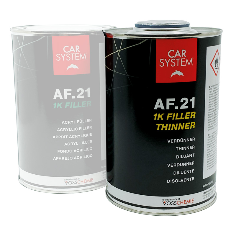 1K Filler ist ein 1K Hybrid Füller (Acryl / Epoxy) zum Abisolieren von Spachtelstellen und Lackieren von Neuteilen. Der AF.21 1K Filler bietet 100 % Rostschutz und kann mit direkter Haftung auf Kunststoffteilen (außer PE, PP und daraus bestehende Mischkunststoffe) appliziert werden.